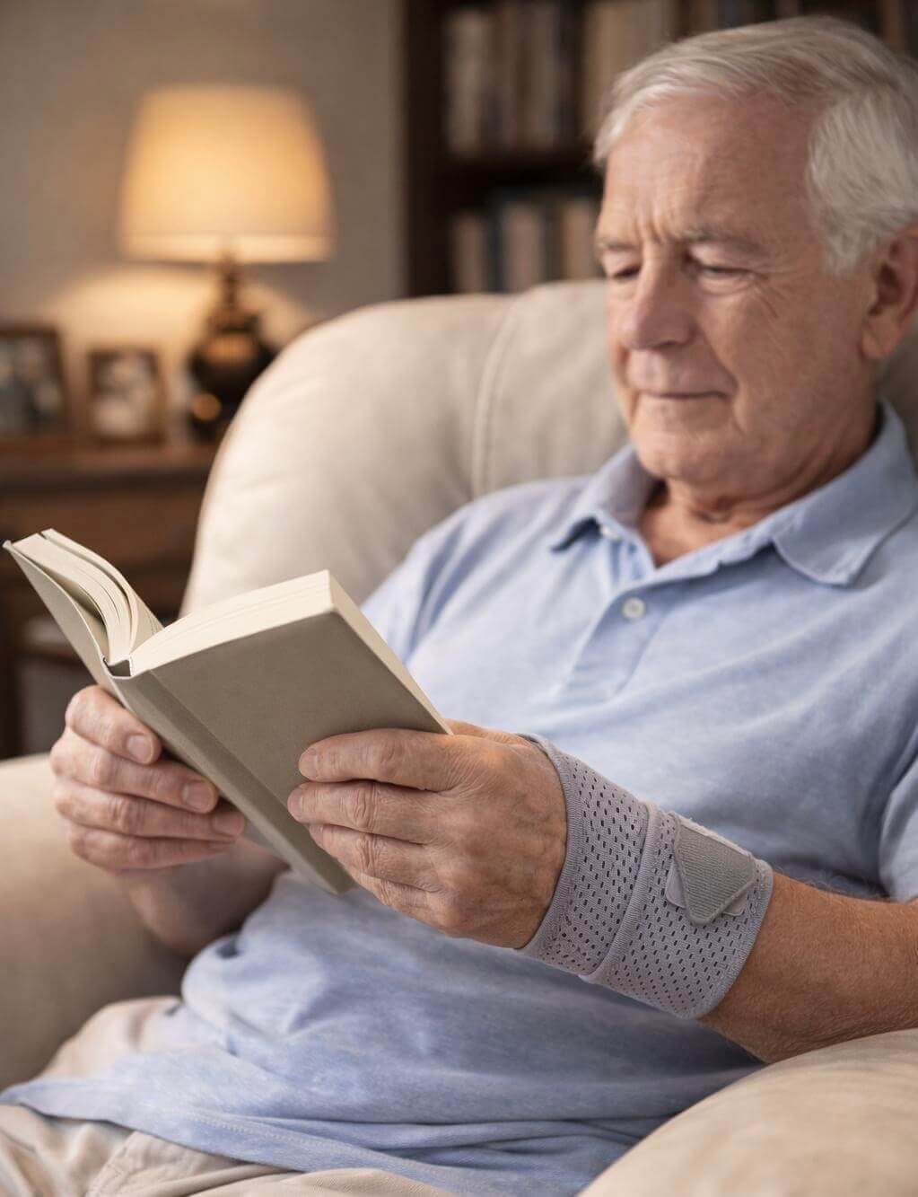 Notre attelle de poignet accompagne les gestes simples comme la lecture, le repos ou les activités calmes. Légère, réglable et discrète, elle offre un maintien agréable pour un confort au quotidien, à tout âge.